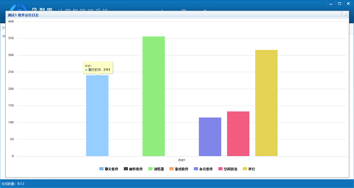 记录被控端的记录次数情况,包括软件运行日志,屏幕日志,聊天日志,网址日志,邮箱收,邮箱发,文字输入日志,外设使用日志,文件操作日志,文件外发日志,文件管控日志,软件变更日志,硬件变更日志等