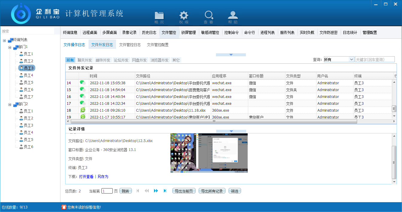可以查看文件外发的记录